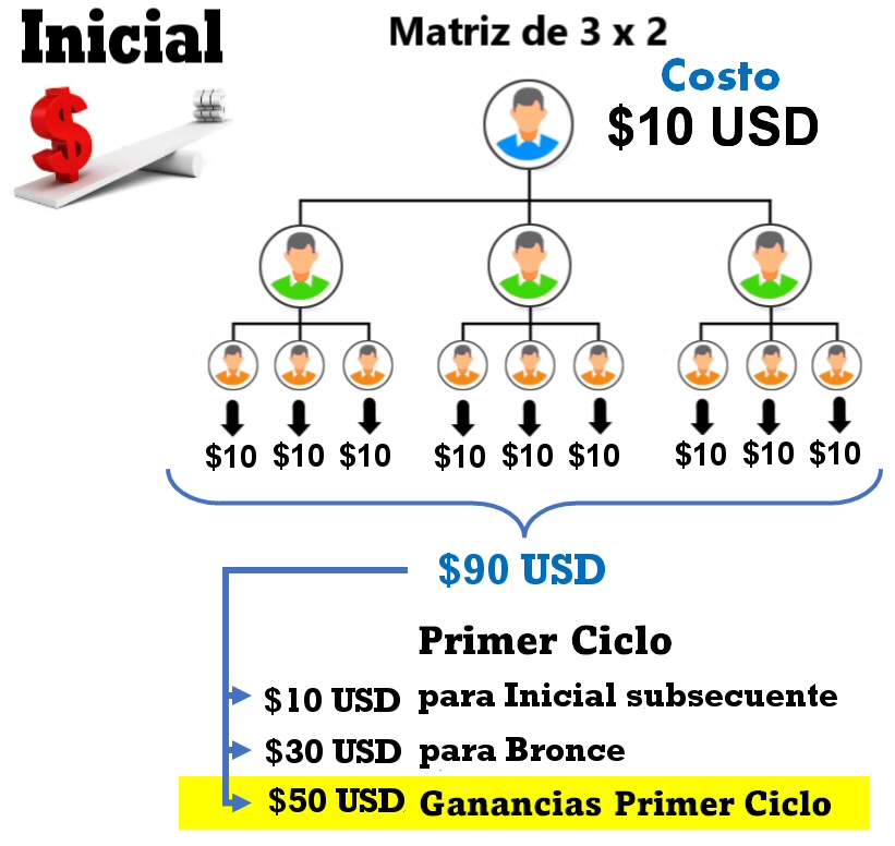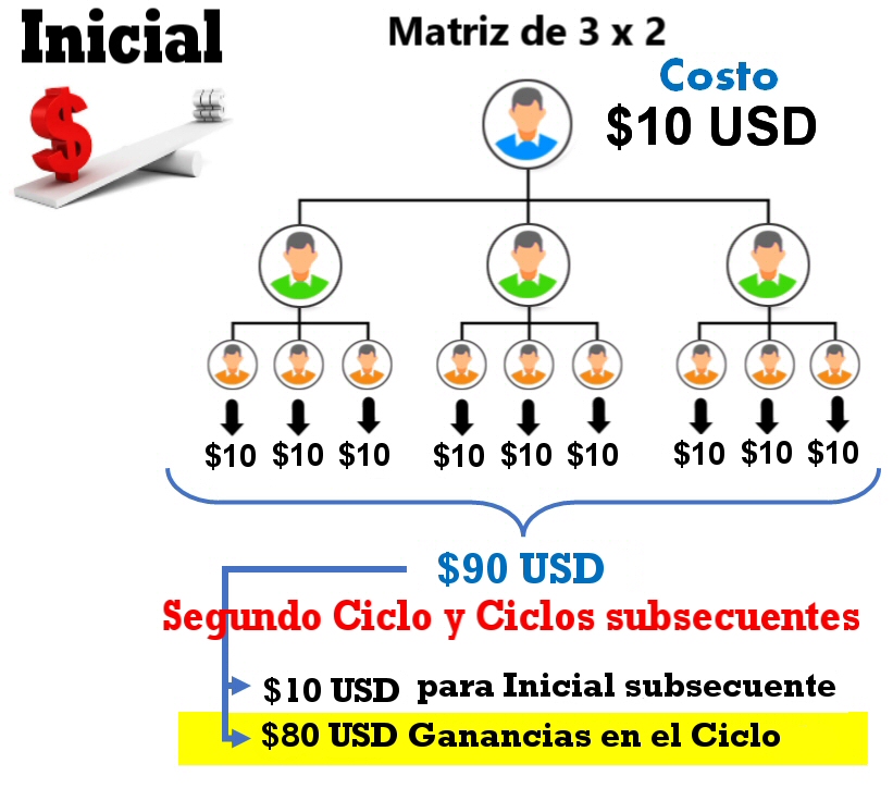 El costo de ingreso a la Matriz Inicial o de Apalancamiento en el segundo ciclo y ciclos subsecuentes es de $10 dólares de los cuales usted tampoco pagará nada. Los $10 dólares se obtienen como resultado de haber llenado la Matriz Inicial o de Apalancamiento del primer ciclo.